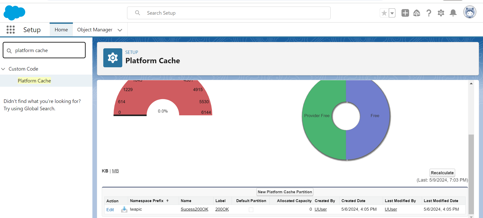 4. In the Platform Cache, you'll find a label called '200 OK' and the allocated capacity is currently set to 0.
