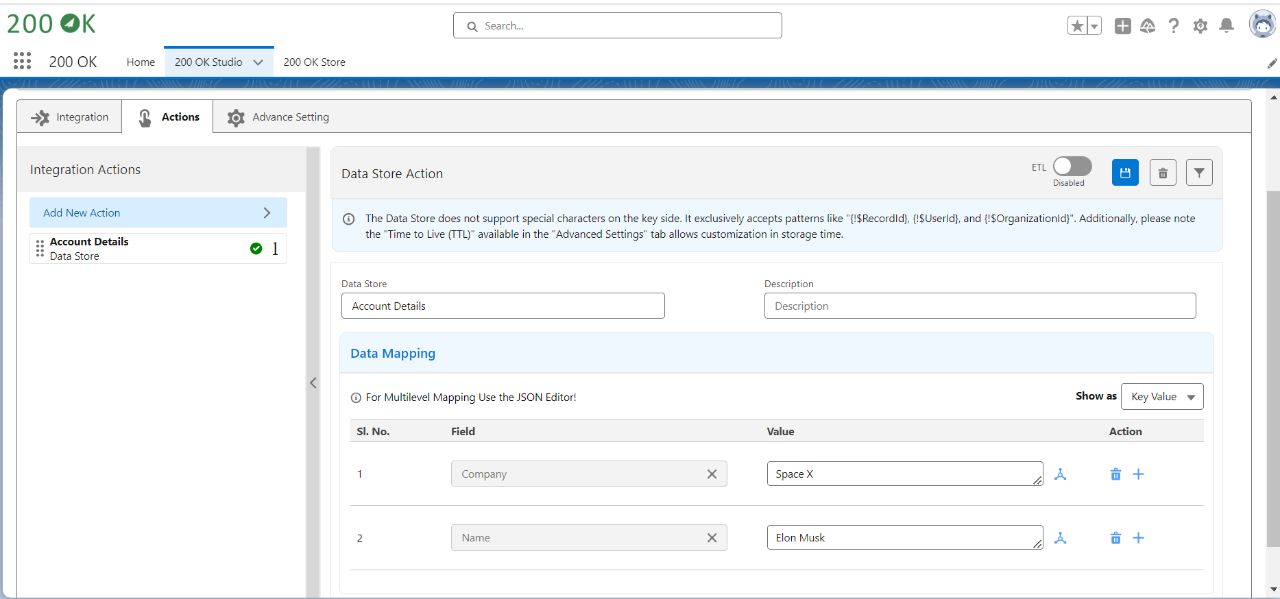 9. Label the Data Store as required and provide the data in the field and value which you want to store.